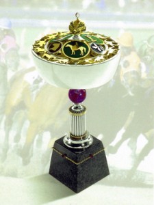 “Triple Tiara”. The award is housed at the Canadian Horse Racing Hall of Fame at Woodbine Racetrack in Toronto. The grill at the top has a race with the medallions representing the development of a racehorse as well as logos of the three races. Capping it is the logo of the Tiara with coloured gemstones representing the races as well as a large oval Canadian diamond at the very pinnacle.