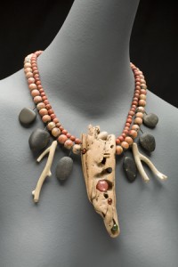 The use of many natural materials, both found and manufactured, is to convey Emily’s concentration of the West Coast landscape and her exuberant paintings of the native totems.