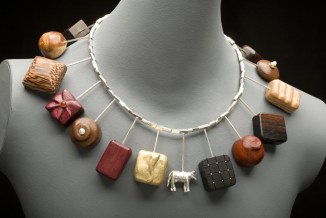 various woods, sterling silver, 14Kgold, pearls, carnelian