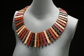 The necklace is in the form of a wooden palisade with the hematite beads representing musket balls.